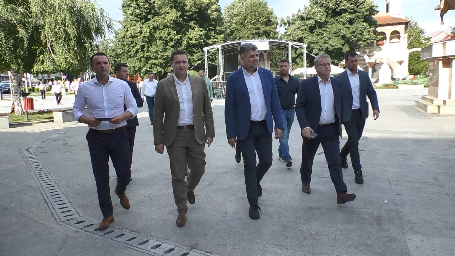 Liderul Marcel Ciolacu alături de președintele PSD Dâmbovița, Corneliu Ștefan, secretarul executiv al PSD Dâmbovița, Cristian Stan, secretarul de stat Ionuț Săvoiu și primari dâmbovițeni a ales să vină pe jos de la sediul partidului până la Casa Sindicatelor unde a avut loc Conferința de alegeri a TSD Dâmbovița.