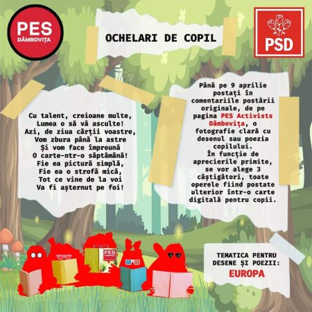 „Ochelari de Copil!”, marea provocare lansată de PES Activists Dâmbovița , tuturor copiilor, cu ocazia Zilei Internaționale a cărților pentru Copii.