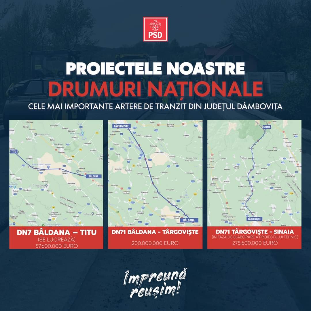 Prin programul național Anghel Saligny, alți 422 kilometri de drumuri publice vor fi modernizate!”, a transmis PSD Dâmbovița