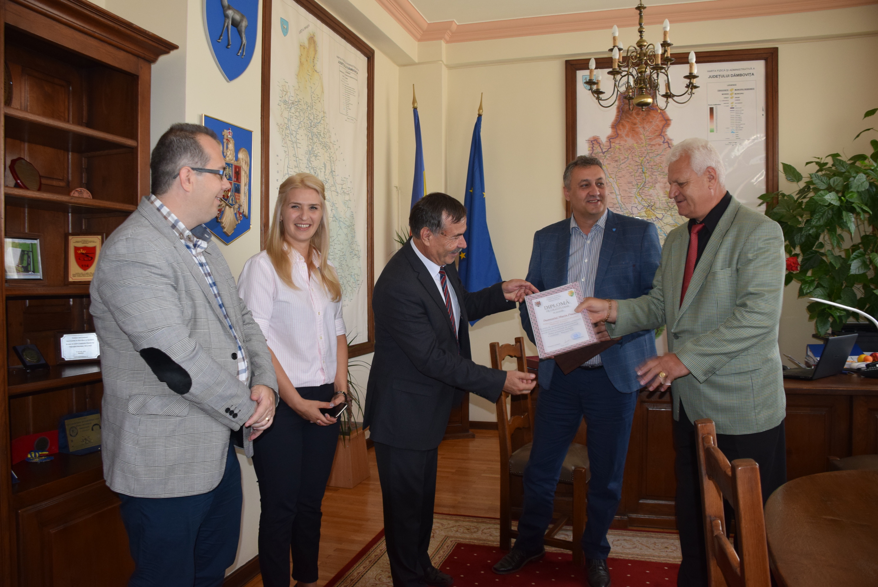 Președintele Consiliului Județean Dâmbovița, Alexandru Oprea, alături de vicepreședinții Luciana Cristea și Alin Manole, a primit vizita unei delegații din comuna Ruseștii Noi (Raionul Ialoveni, Republica Moldova).