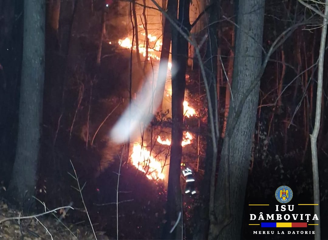 La fața locului, echipajele de intervenție au constatat că arde litiera pe o suprafață de aproximativ 1 ha.
