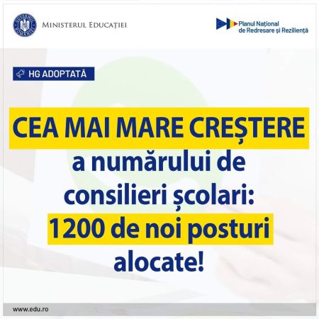 A crescut cu 50% numărul de posturi alocate consilierilor școlari care vor contribui la creșterea accesului elevilor și preșcolarilor la servicii de asistenţă psihopedagogică, orientare școlară și profesională.