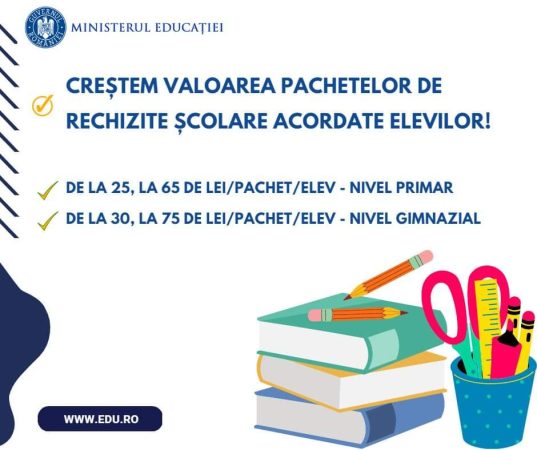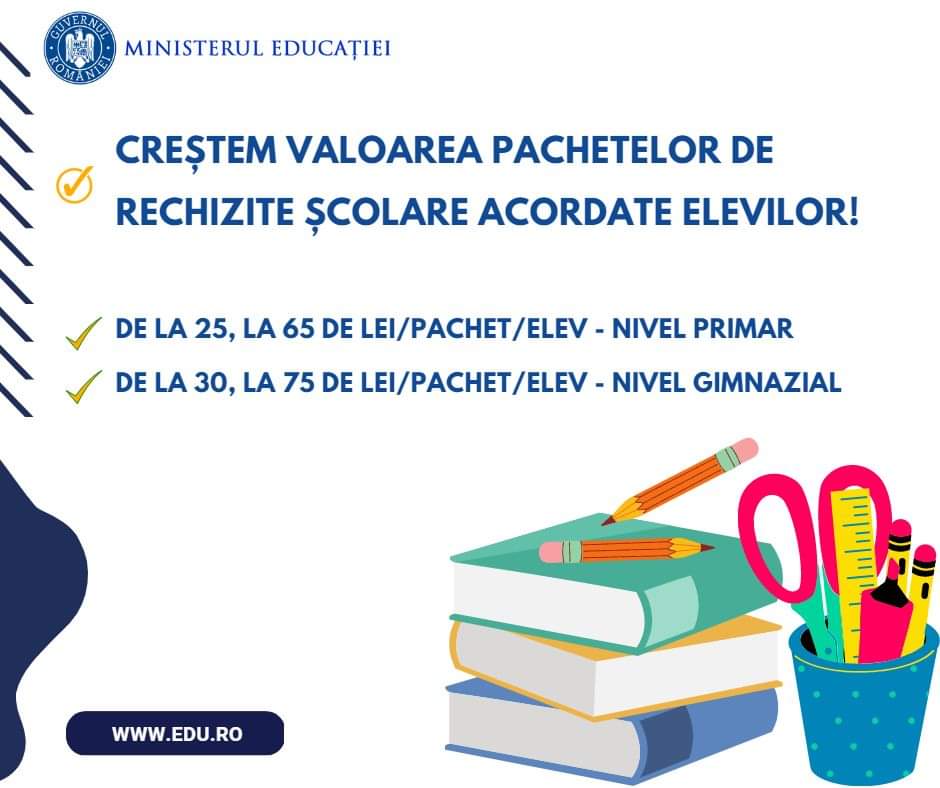 Valoarea maximală a pachetelor de rechizite școlare ce se acordă elevilor începând cu anul școlar 2023-2024: