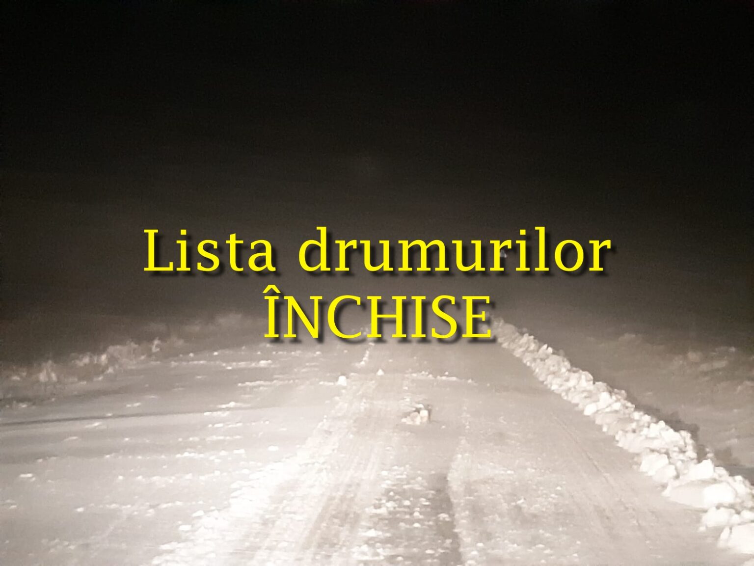 Din cauza vizibilității scăzute cauzate de zăpada spulberată de viscol,se închid următoarele sectoare de drum: