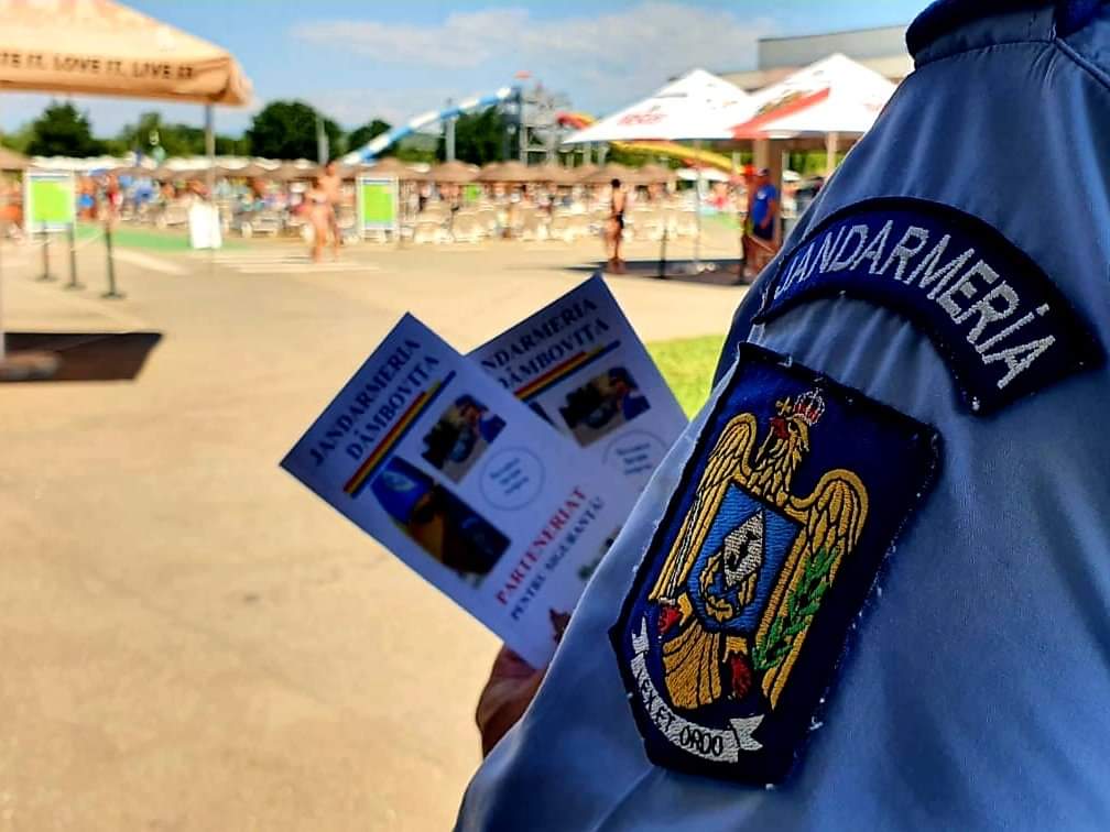 AVEȚI GRIJĂ, HOȚII NU AU LUAT VACANȚĂ, jandarmii în cooperare cu polițiști și reprezentanți ai Serviciului Județean Anticorupție Dâmbovița au organizat o acțiune de informare preventivă în rândul cetățenilor care și-au petrecut timpul liber la Complexul Turistic de Natație Târgoviște.