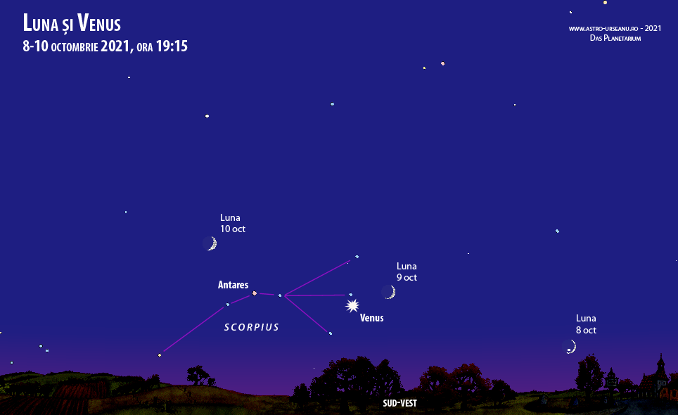 În fiecare seară de octombrie, înspre sud-vest, după apus, până în ora 20, se vede planeta Venus.