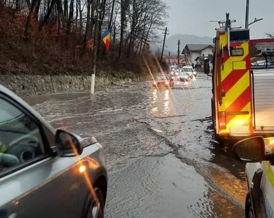 Circulație restricționată pe DN 7, partea carosabilă a fost inundată, pe raza localității Călimănești.