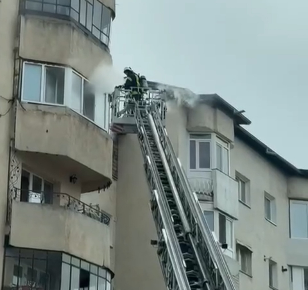 Clipe de groază pentru locatarii unui bloc din Târgoviște, un apartament a fost cuprins de flăcări, pe strada I.E. Florescu.