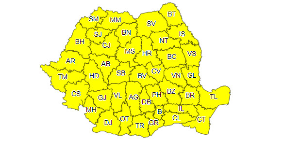 În toate regiunile, vântul va avea local și temporar intensificări, cu viteze de 50..65 km/h și izolat peste 70 km/h.