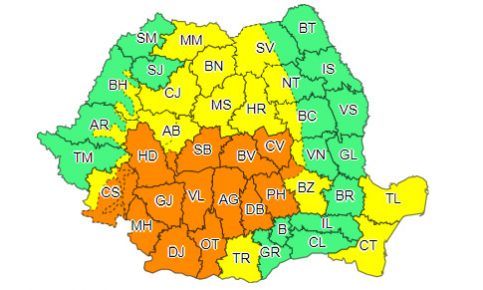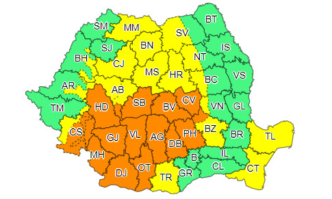 În intervalul, 05 iulie, ora 12:00 – 05 iulie, ora 23:00, în Oltenia, nordul și nord-vestul Munteniei, sudul Banatului, precum și în jumătatea de sud a Transilvaniei vor fi intervale cu averse torențiale, frecvente descărcări electrice, intensificări puternice ale vântului, vijelii și grindină.În intervale scurte de timp sau prin acumulare, cantitățile de apă vor depăși 35…40 l/mp și pe arii restrânse 50…70 l/mp.