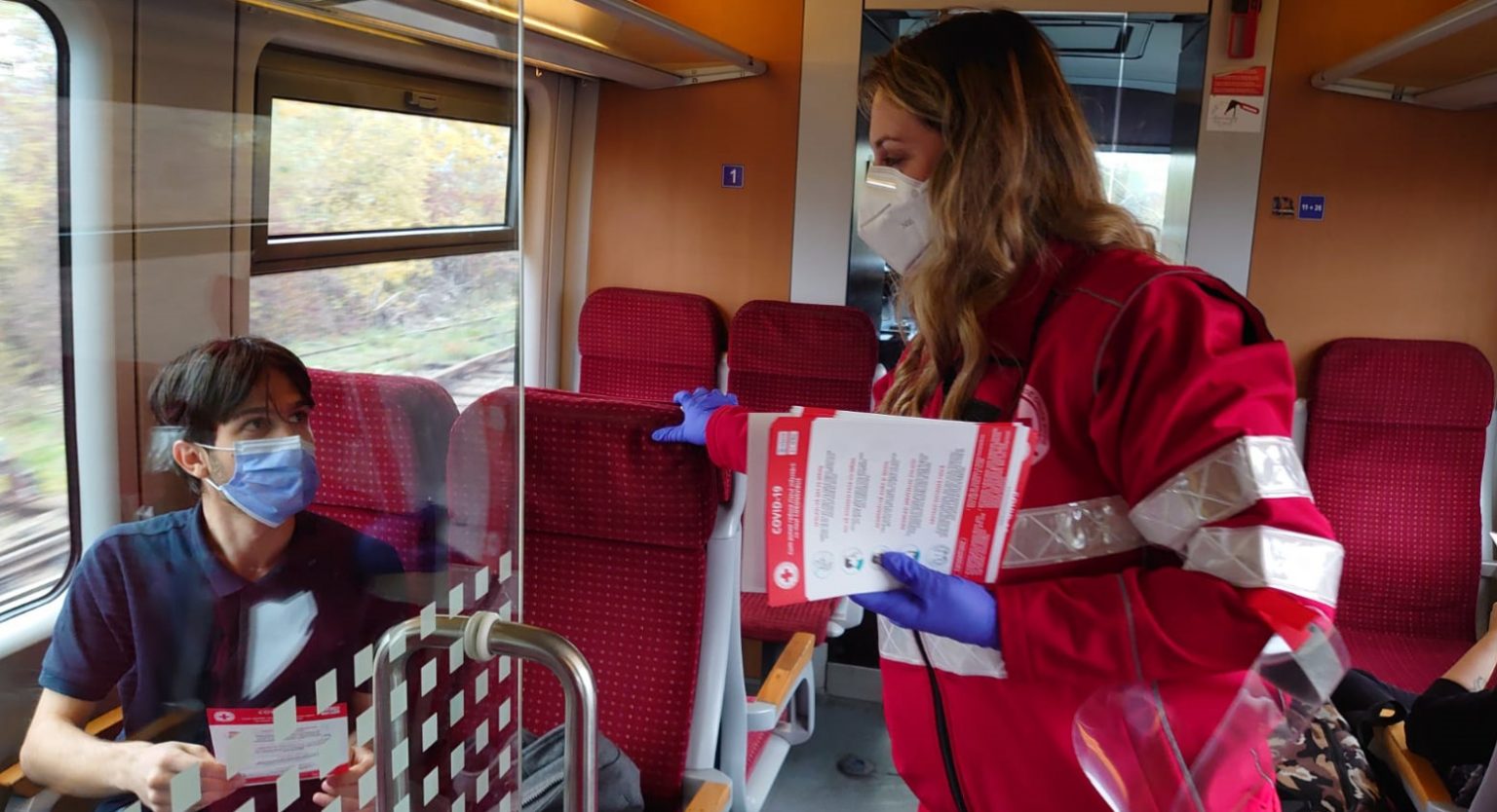 Voluntarii Crucii Roșii Dâmbovița au desfășurat prima acțiune din cadrul proiectului „CRUCEA ROSIE ROMÂNĂ: COVID-19”, pe traseul Târgoviște-Titu, folosind ruta feroviară.