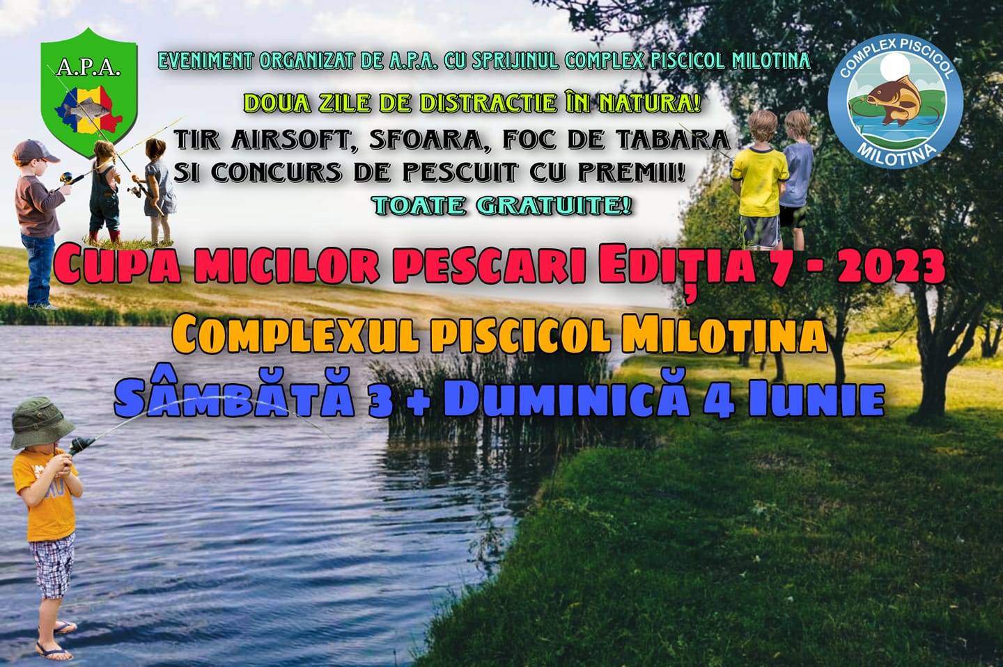Duminică , 4 Iunie – CONCURS PESCUIT PE GRUPE DE VÂRSTĂ, Juniori 1, 5-9ani / Juniori 2, 10-14ani (se premiază separat)