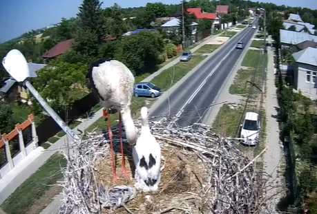 Familia de Berze de la Răcari, unicul pui crește pe zi ce trece, ca de fiecare dată, și în acest an urmărim cu mare interes tot ceea ce se întâmplă în cuibul de berze din Răcari.