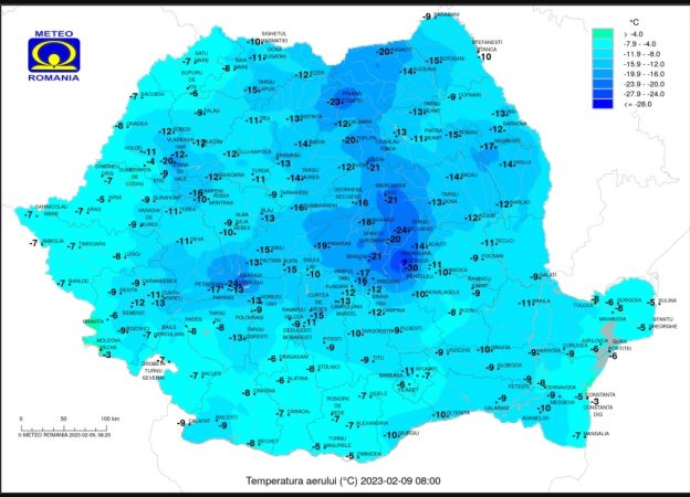 GER NĂPRASNIC, JOI, 9 FEBRUARIE 2023, vremea deosebit de rece în centru și est, geroasă mai ales dimineața și noaptea în cea mai mare parte a țării.