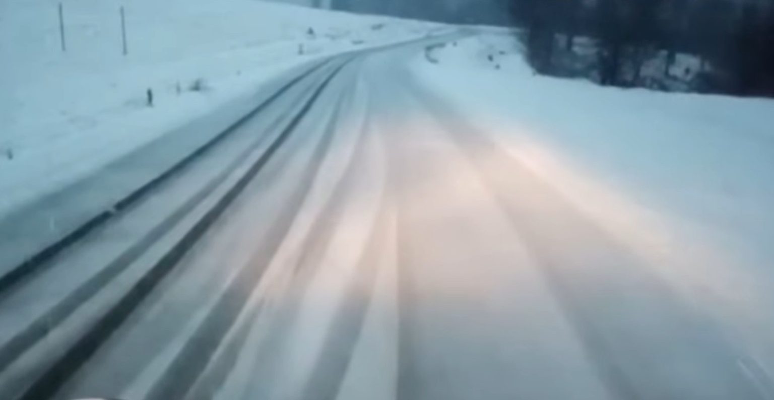 Imaginile dimineții, iarnă în toată regula, în județul Gorj, pe DN 67C, între Novaci și Rânca, se acționează permanent cu utilaje cu lamă și material antiderapant.