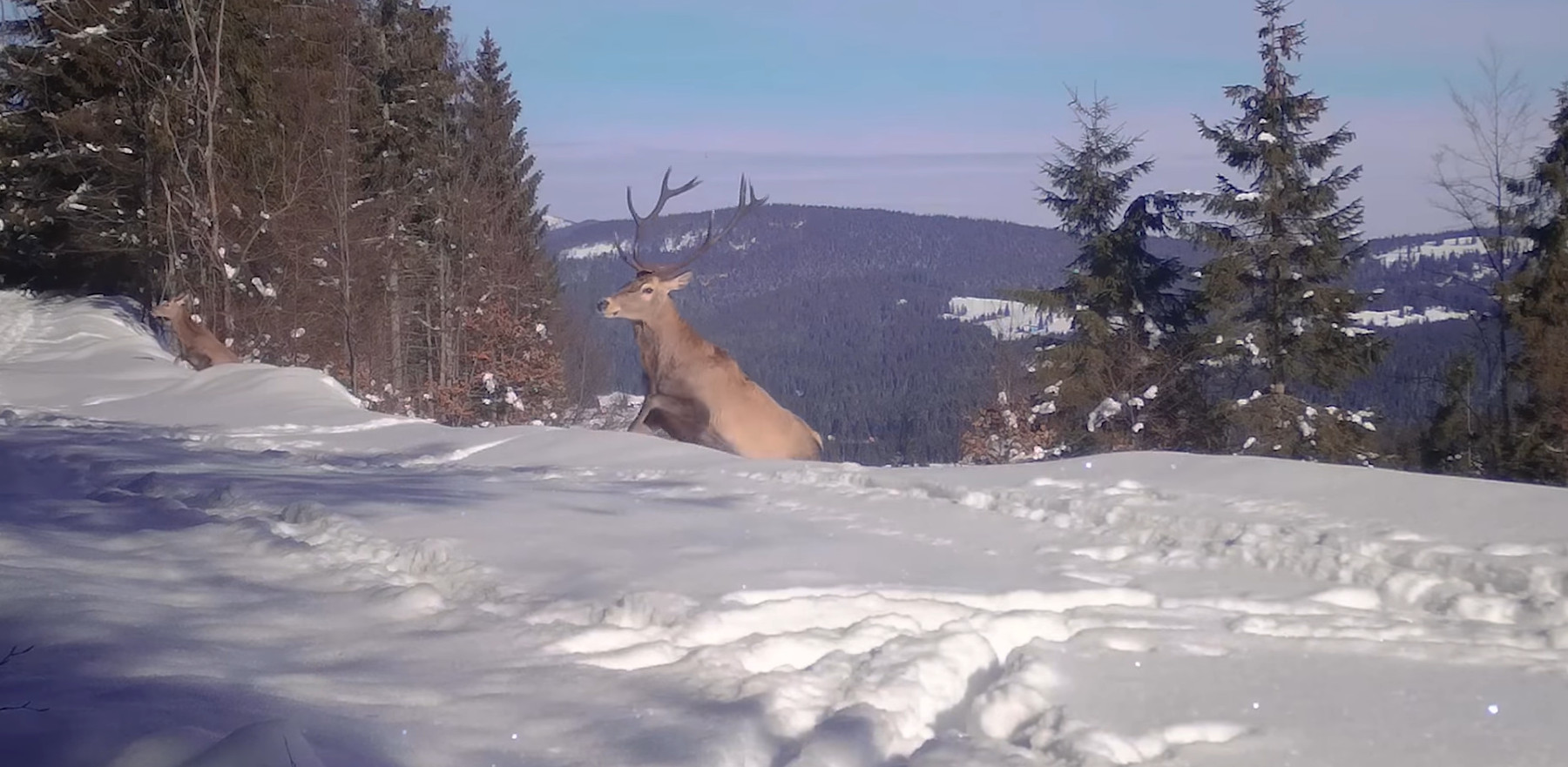 Joaca cerbilor într-o pădure din Parcul Natural Apuseni surprinsă de camerele de monitorizare a faunei ce aparțin Parcului.
