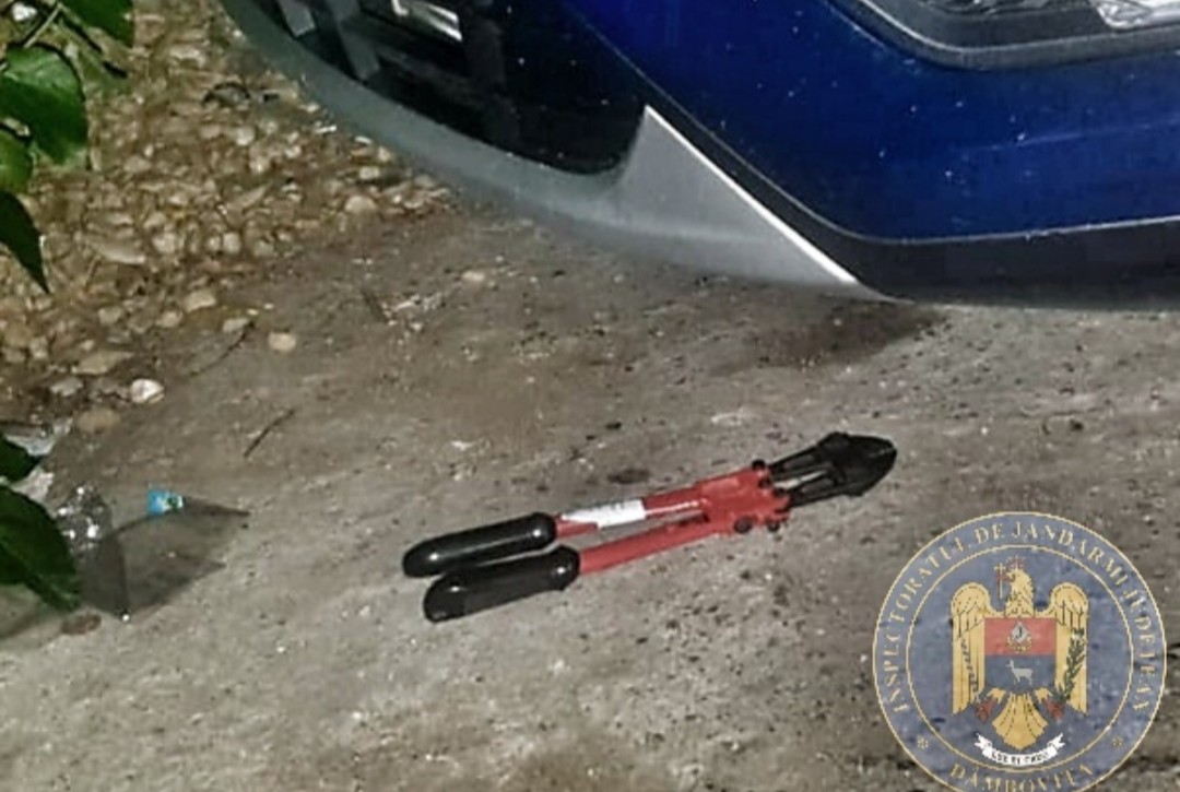 Forțele de ordine nu au stat pe gânduri  și imediat i- au legitimat pe indivizi. Jandarmii au verificat zona și imediat au văzut lângă o mașină un clește special pentru tăiatul fierului.