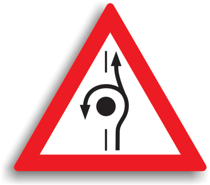 Mare atenție! Nu este un sens giratoriu și nu aveți prioritate de trecere, față de vehiculele care circulă din sens opus. Pentru întoarcere trebuie să le acordați acestora prioritate de trecere.