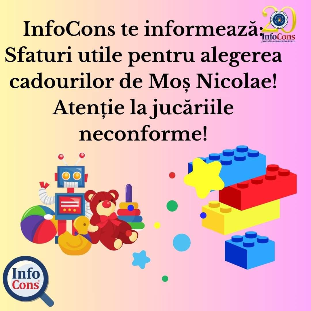 InfoCons : Sfaturi utile pentru pentru alegerea cadourilor de Moș Nicolae, atenție la jucăriile neconforme, la noapte vine moșul, așadar, astăzi, magazinele cu jucării vor fi luata cu asalt iar siguranța celor mici trebuie să fie pe primul loc.
