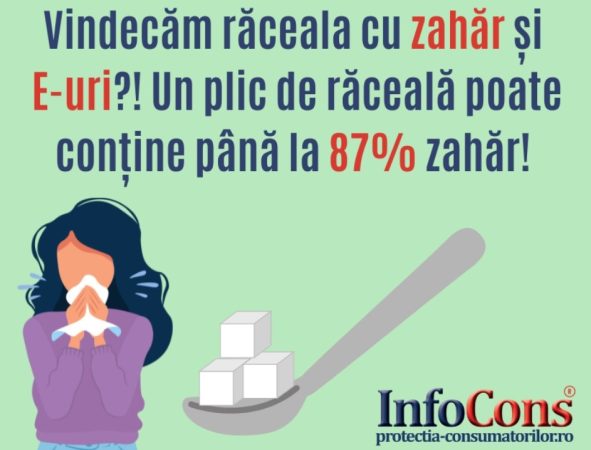 Un plic împotriva răcelii poate conține pâna la 87% zahăr, media fiind 36%, în condițiile în care unele etichete nu furnizează informații cu privire la cantitatea de zahăr conținută de produs.