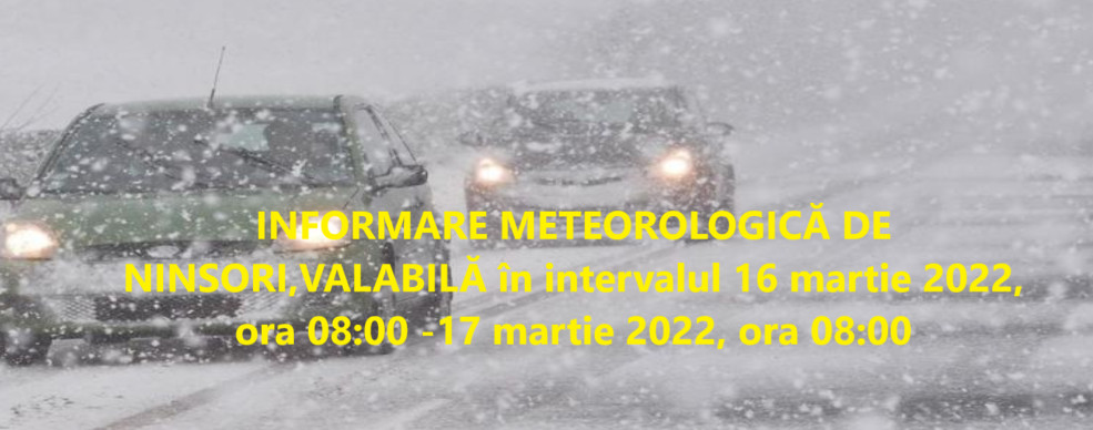 INFORMARE METEOROLOGICĂ DE NINSORI,VALABILĂ în intervalul 16 martie 2022, ora 08:00 -17 martie 2022, ora:08:00, așadar se întoarce iarna care se pare că nu se lasă dusă.