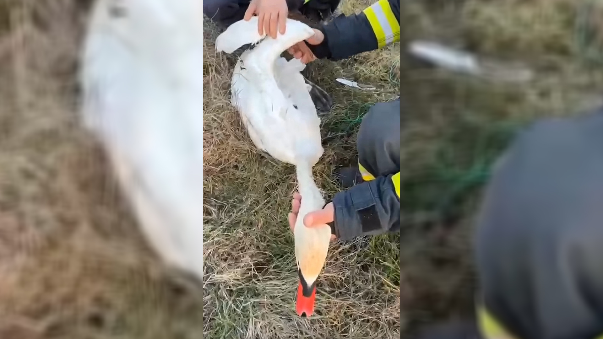 Adusă la mal, pompierii i-au eliberat aripa și au învelit-o pentru că era înghețată, cel mai probabil din cauza timpului îndelungat în care a stat nemișcată.