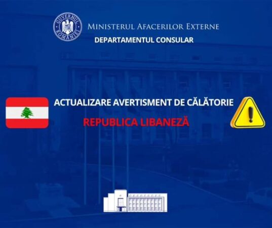 MAE recomandă ferm părăsirea imediată a zonelor din sudul Libanului (regiunea din sudul râului Litani), având în vedere confruntările armate recente din zona de frontieră libanezo-israeliană. Totodată, MAE recomandă evitarea tuturor călătoriilor în Liban, iar cetățenilor care se află deja în Liban, evaluarea cu responsabilitate a necesității rămânerii pe teritoriul acestui stat.