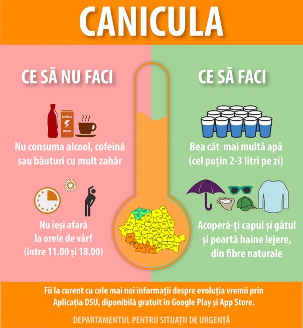 Măsuri de protecție în caz de caniculă pentru că temperaturile ridicate din zilele toride de vară pot afecta grav funcționarea organismului, având efecte negative atât asupra sănătății fizice, cât și asupra celei psihice.