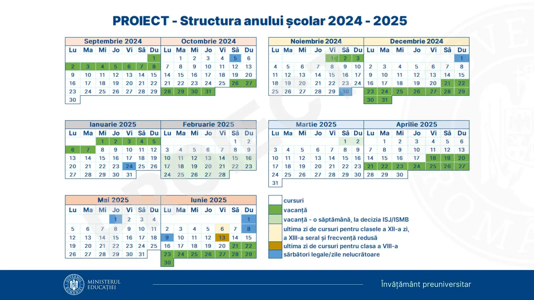 Calendarul anului școlar 2024-2025 – proiect: