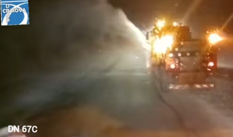 Ninge viscolit în zona de creastă a DN 67C, zona Rânca, se acționează cu utilaje cu lamă și autofreză