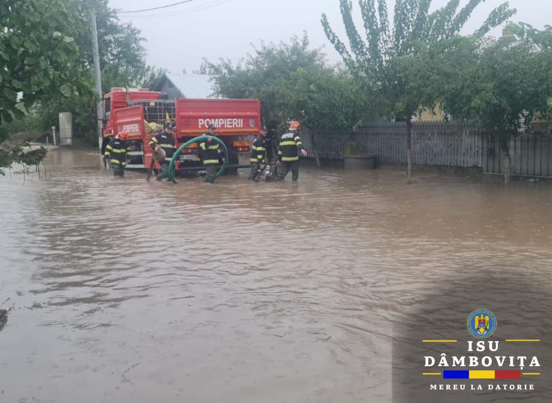 Pompierii Inspectoratului pentru Situații de Urgență „Basarab I” al județului Dâmbovița acționează în localitatea Cuza Vodă, județul Galați, pentru evacuarea apei din gospodăriile afectate de inundații.
