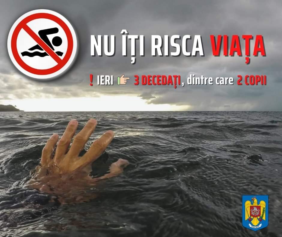 SEMNAL DE ALARMĂ, nu te aventura în zone periculoase, nu-ți lăsa copiii nesupravegheați, atunci când sunt în apă.