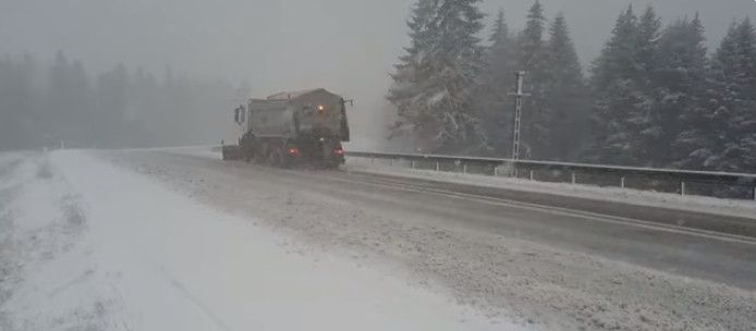 SITUAȚIA TRAFICULUI ÎN ȚARĂ, Centrul INFOTRAFIC din Inspectoratul General al Poliţiei Române informează că se circulă în condiții de iarnă, fiind depusă zăpadă pe carosabil, în județele Harghita (DN 15C, localitatea Lacul Roșu) și Hunedoara. Se acționează cu utilaje pentru deszăpezire.