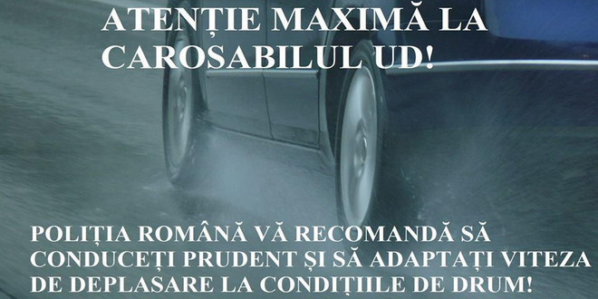 Conducătorii auto sunt sfătuiți să circule cu viteza adaptată condițiilor de trafic și de drum, iar înainte de a pleca în călătorie, să se informeze cu privire la condiţiile meteorologice din zonele în care urmează să meargă şi să-și echipeze autovehiculele cu anvelopele de iarnă dacă deplasarea va fi efectuată pe sectoare de drum unde este zăpadă sau carosabilul este alunecos de la gheață sau polei.