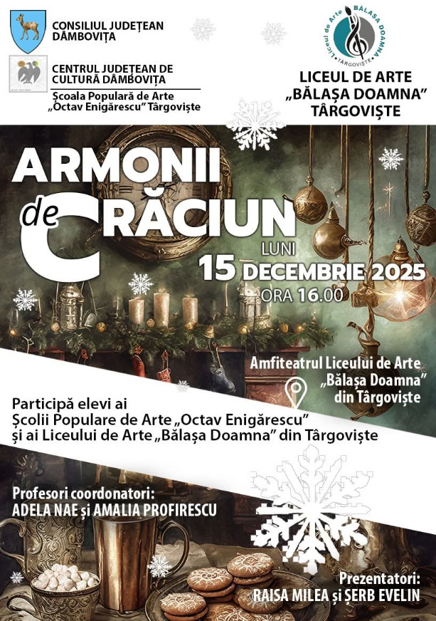Pe 15 decembrie 2025, ora 16:00, la Amfiteatrul Liceului de Arte „Bălașa Doamna” din Târgoviște.