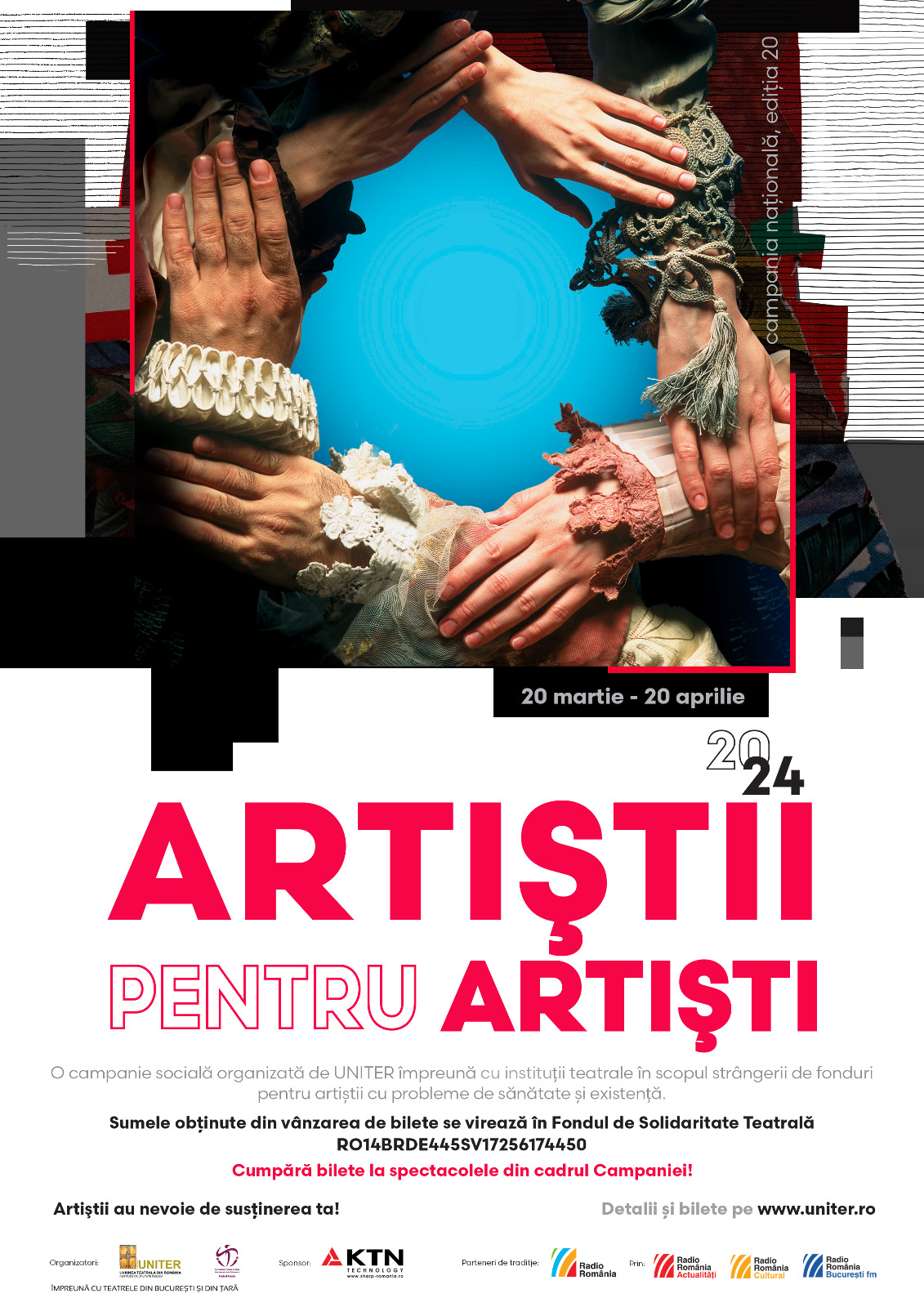 În teatrul românesc, luna martie poartă simbolul generozității! E luna când facem totul pentru artiştii noştri. E luna când, atent la nevoile artiștilor săi, UNITER reia demersul caritabil validat și realizat de 20 de ani împreună cu instituțiile de cultură din România: Campania Națională „Artiștii pentru artiști”.