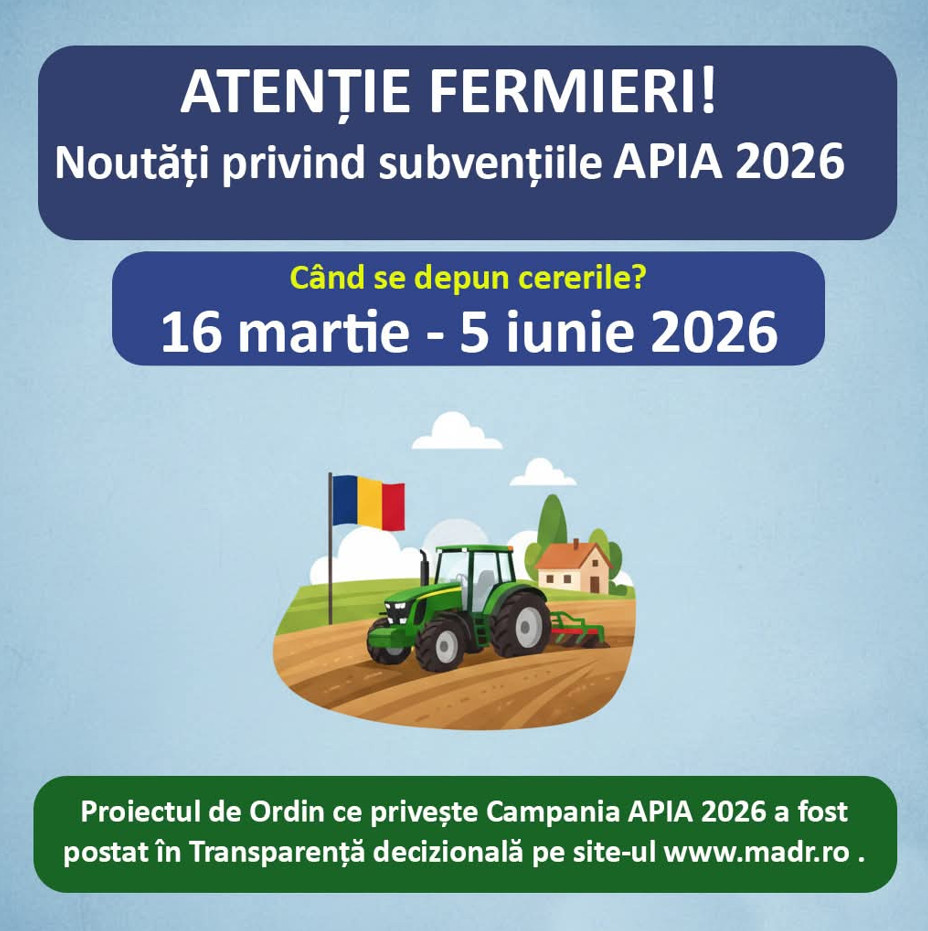 Perioada oficială pentru depunerea Cererilor de Plată la APIA este 16 martie – 5 iunie 2026.