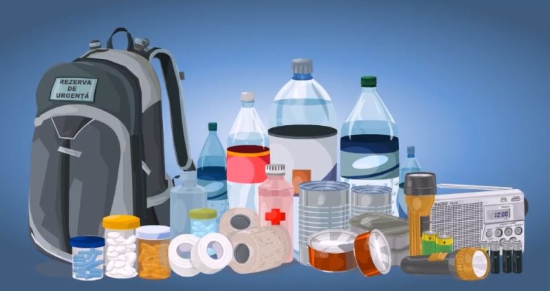 „O să vă arăt ce conţine kit-ul meu de supravieţuire pentru trei zile de misiune, similar ar trebui să conţină şi kitul unei familii. Apă, 2-4 litri, o pătură pentru încălzirea corpului, materiale de primă urgenţă medicală, aici putem vorbi de pansamente, feşe, de o forfecuţă, plasturi. Hrană care nu este perisabilă, mai multe conserve, ciocolată, biscuiţi, o lanternă, un mic radio ca să audă mesajele de la autorităţi”, spune un reprezentant IGSU.