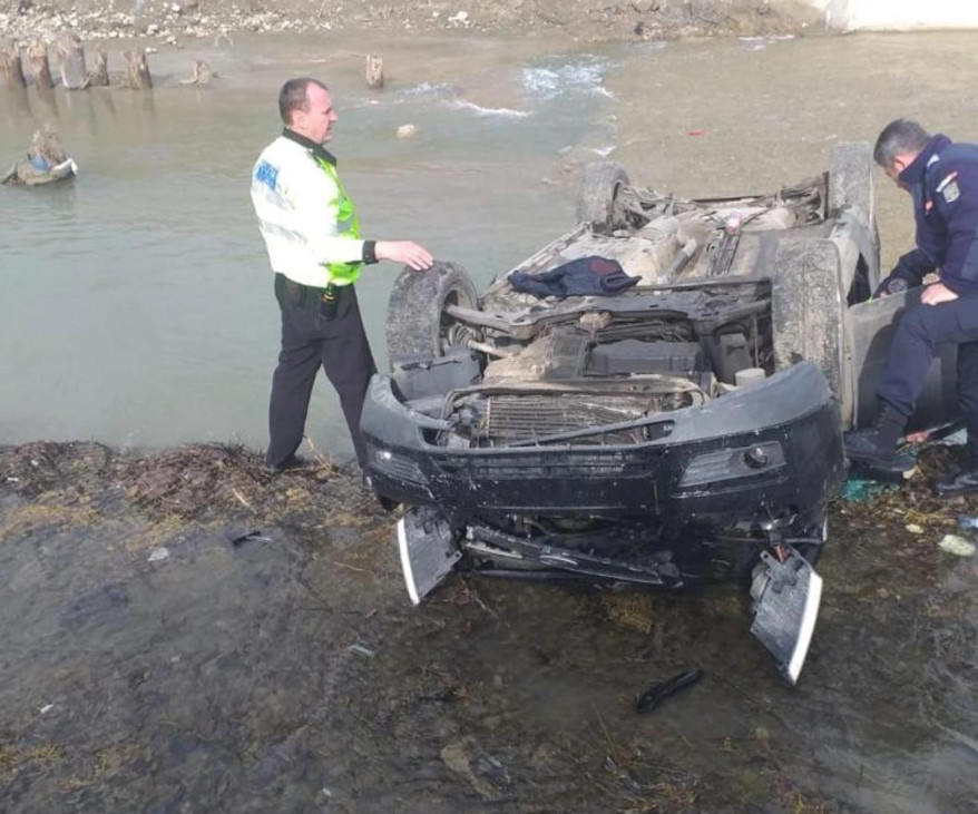 Un tânăr de 18 ani, fără permis, a plecat cu mașina la plimbare dar a ajuns într-un pârâu, polițiștii dâmbovițeni au alertați de un participant la trafic cu privire la faptul că un autoturism este răsturnat în albia unui pârâu.