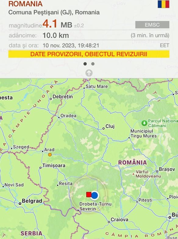 În ziua de 10 Noiembrie 2023 la ora 19:48:21 (ora locală a României) s-a produs în OLTENIA, GORJ un cutremur mediu cu magnitudinea ml 4.2, la adâncimea de 13.9km.