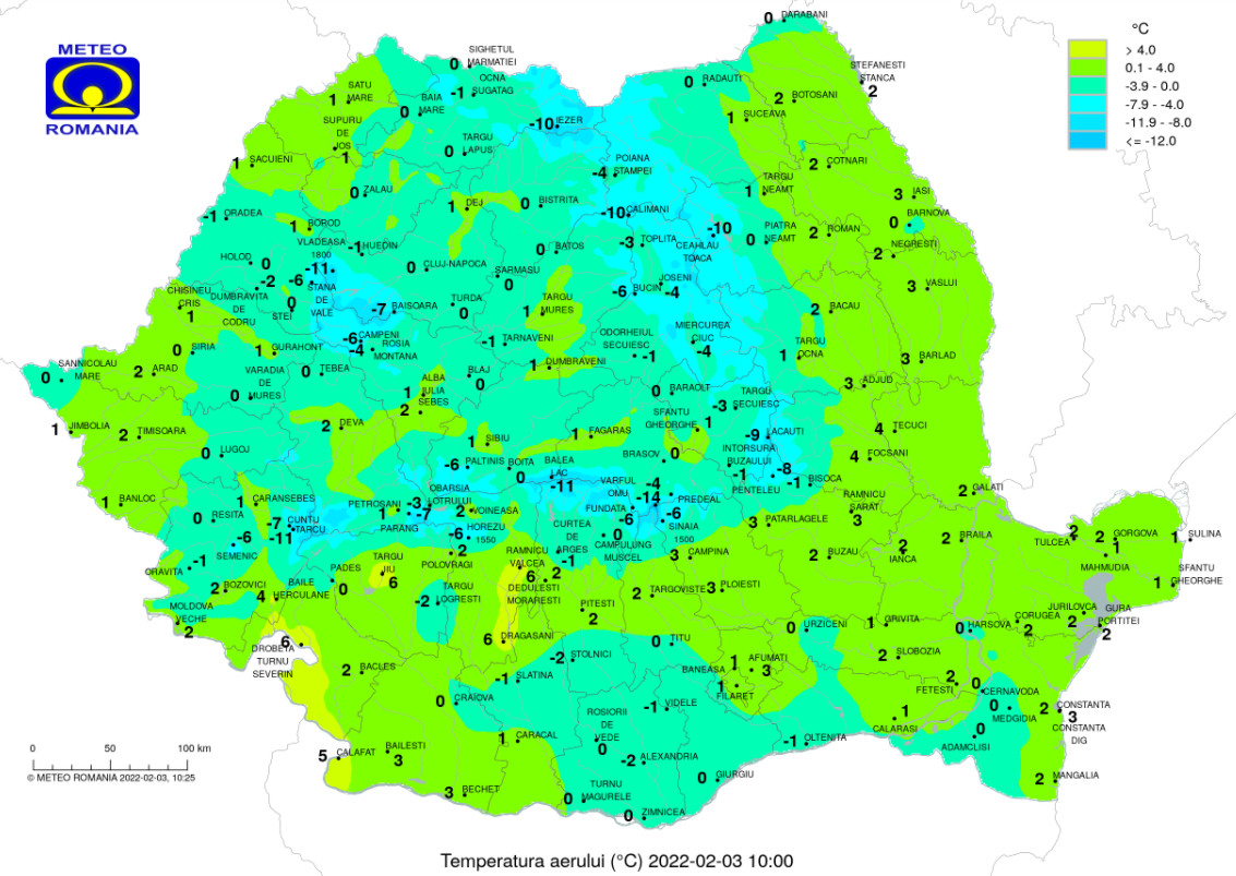 Temperaturile maxime se vor situa peste mediile multianuale în sudul teritoriului, astfel acestea se vor încadra între -2 și 10 grade, iar cele minime, în general, între -13 și -3 grade, cu cele mai scăzute valori în depresiunile Carpaților Orientali. Pe arii restrânse se va forma ceață și vor fi condiții de polei.