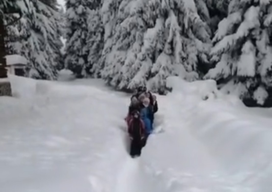 Zece persoane, printre care și copii, rămase înzăpezite la o cabană,  au fost evacuate în siguranță de jandarmi. VIDEO