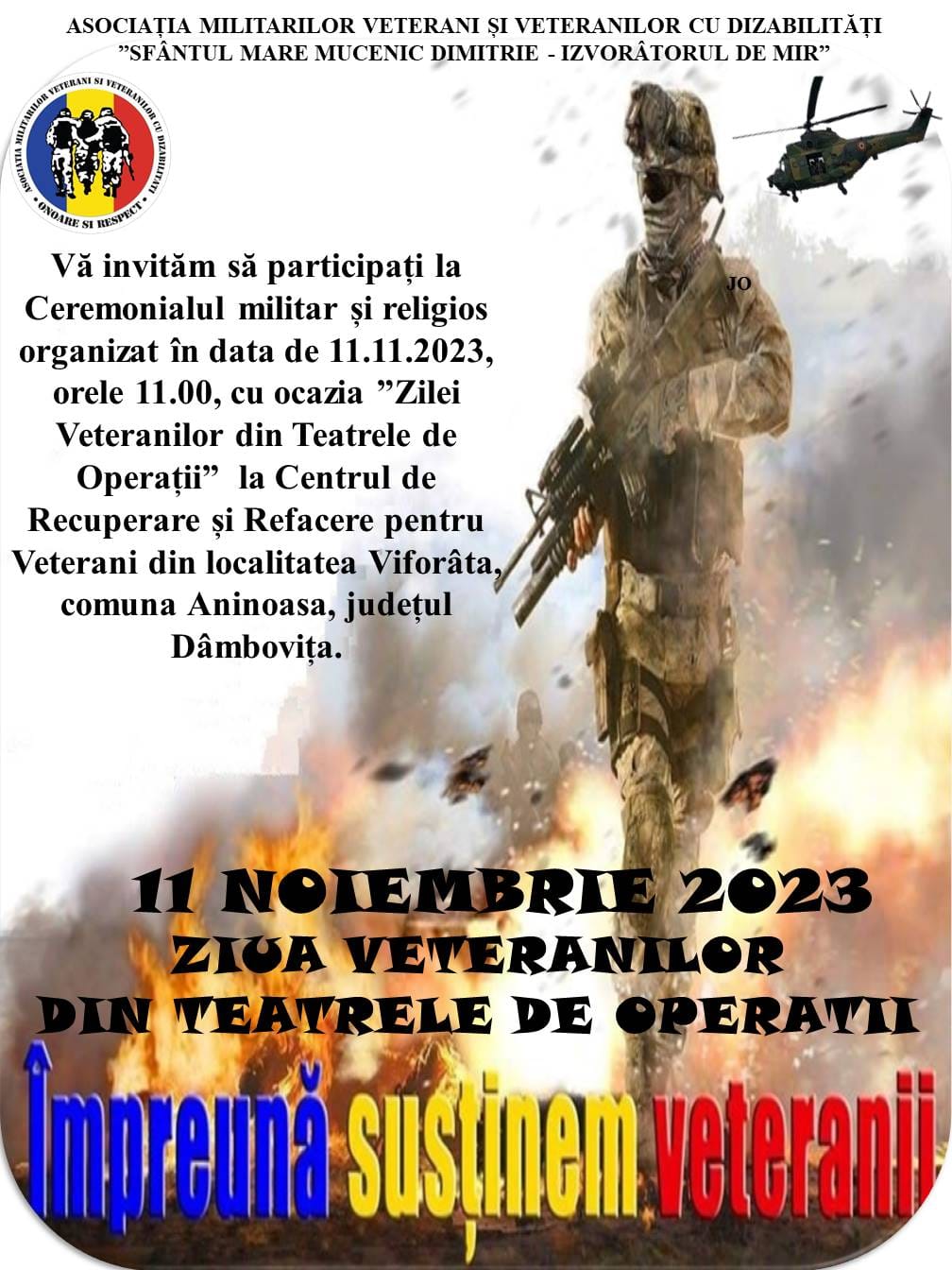 Este ziua în care onorăm faptele de vitejie ale Veteranilor din Teatrele de Operații, cei care, prin curajul și tenacitatea dovedite în misiuni, în cele mai fierbinți zone ale lumii, au făcut ca Armata României să fie apreciată pretutindeni.