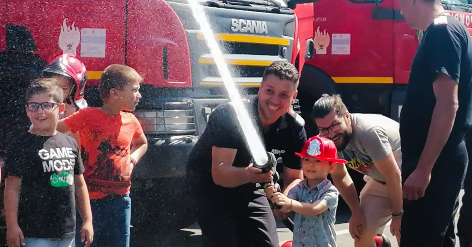 Cei mici au avut ocazia să vadă mașinile de stingere și ambulanța SMURD, au probat căștile de protecție, sirena pompierilor și au mânuit furtunul cu apă. Au alergat de la o autospecială la alta și toți au spus că vor să se facă pompieri atunci când vor fi mari. Atracția de astăzi a fost ”plimbarea” la înălțime și barca de salvare.