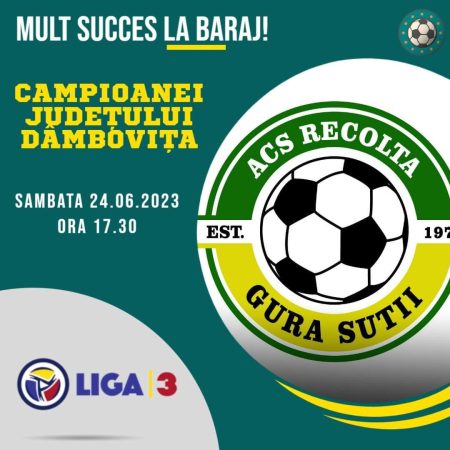 Astăzi, se decide daca Recolta Gura Șuții promovează în Ligă 3, manșa retur a barajului pentru promovarea în Liga 3, FC U Craiova 2 – Recolta Gura Șuții, programată sâmbătă, la ora 17.30, va fi arbitrată de Horia Mladinovici (București), Mihăiță Necula (București) și Gheorghiță Bălan (Pitești).