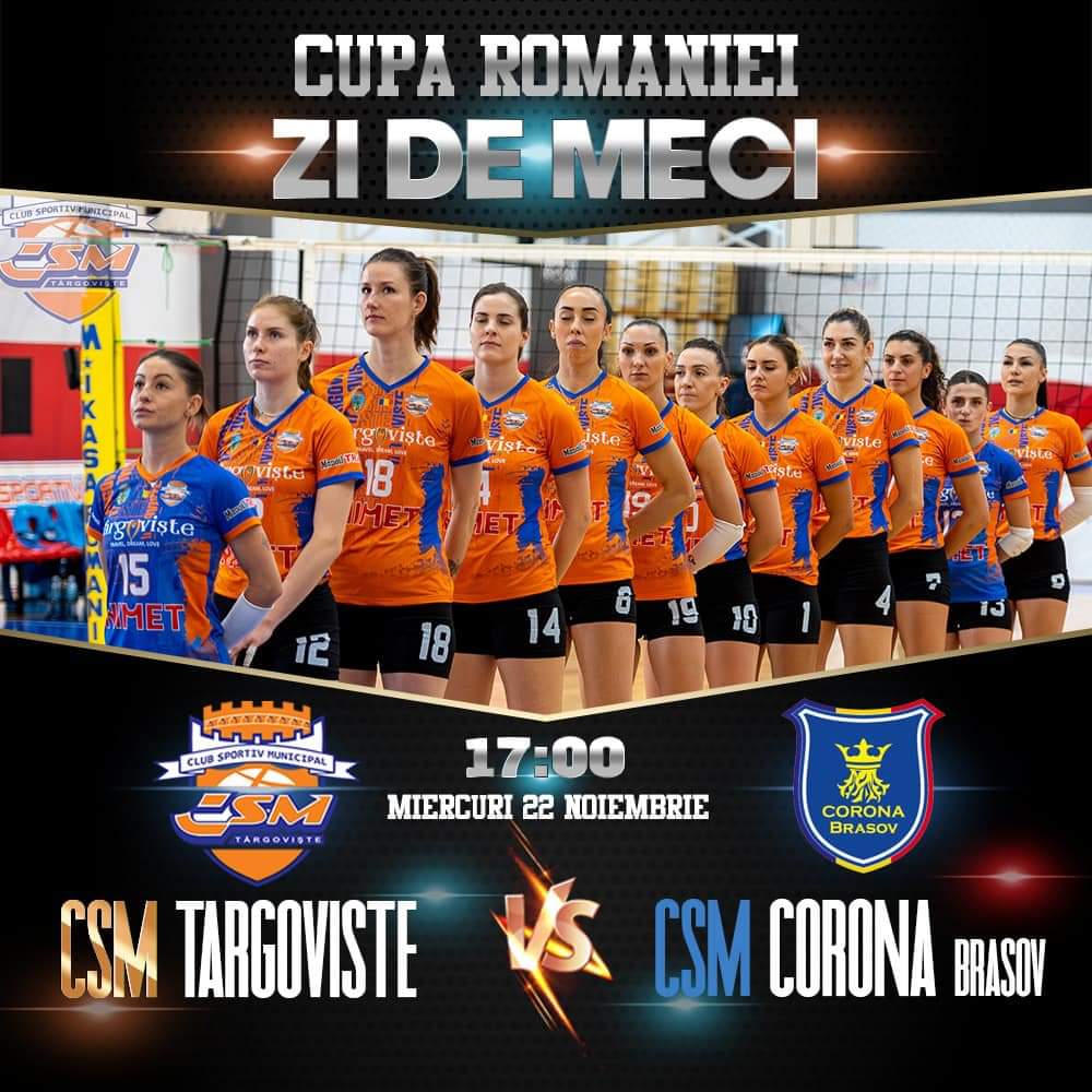 CSM Târgoviște întâlnește în turul 2 al Cupei României, pe CSM Corona Brașov, astăzi, 22 noiembrie, ora 17:00, în sala „Ioan Valerian” din Târgoviște .