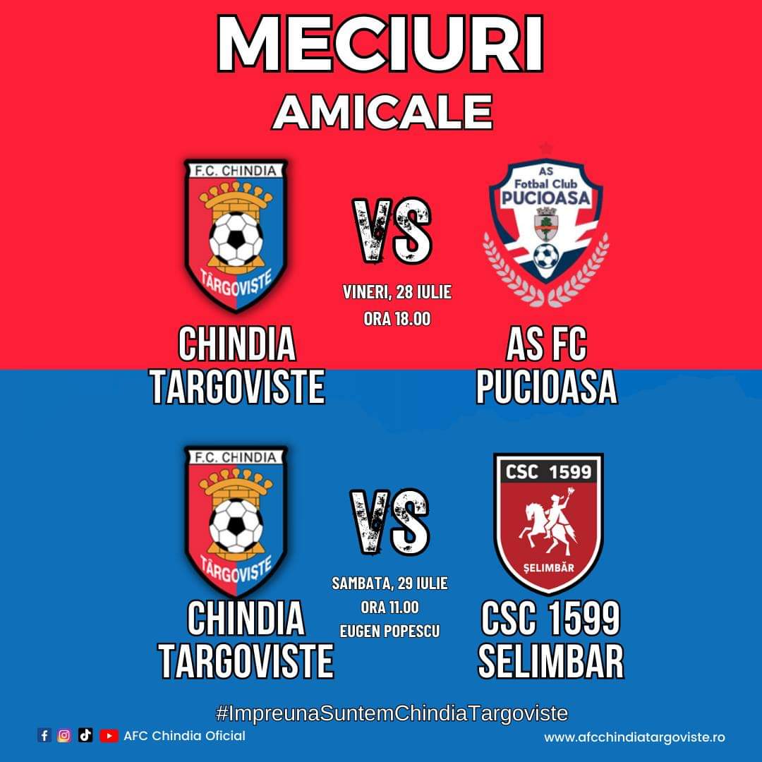 Ultimele teste ale Chindiei Târgoviște, înainte de începerea campionatului, vineri, 28 iulie, ora 18.00, va juca amical cu FC Pucioasa.