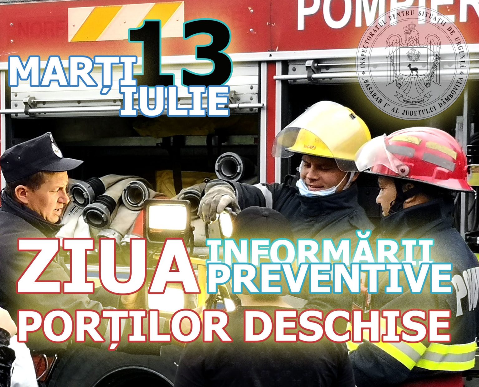 13 IULIE, Ziua Informării Preventive,marcată în fiecare zi de 13 ce pică marţea, ne oferă ocazia de a readuce în atenția cetățenilor principalele recomandări, reguli și măsuri pentru asigurarea unei minime protecții personale în fața diferitelor situații de urgență ce se abat asupra comunităților umane.