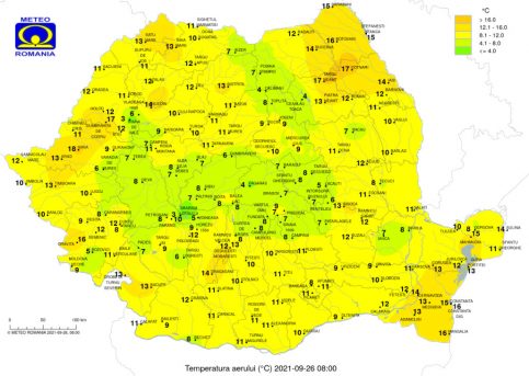 26 septembrie, vreme frumoasă, devenind caldă pentru această dată, pe parcursul zilei cerul va fi variabil în nord şi nord-est şi mai mult senin în rest, iar seara şi noaptea se va înnora în cea mai mare parte a Moldovei unde, izolat, vor fi condiţii de ploaie slabă sau burniţă.