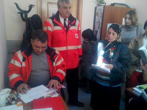 Sute de persoane din judeţul Dâmboviţa au primit astăzi, din partea Crucii Roşii Dâmboviţa tichete sociale .